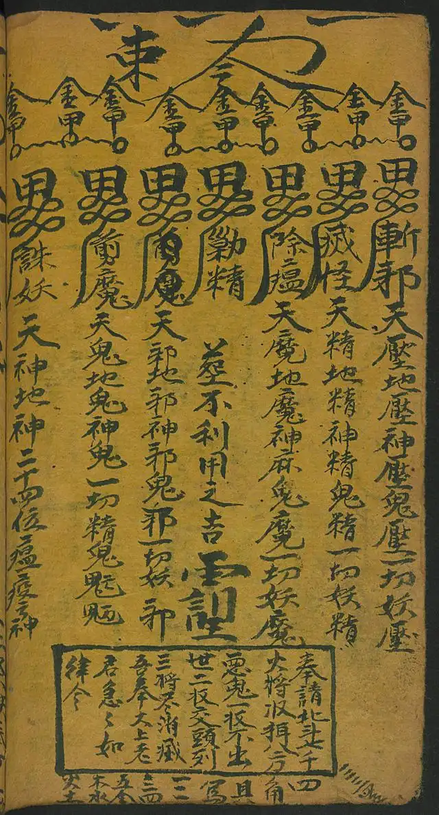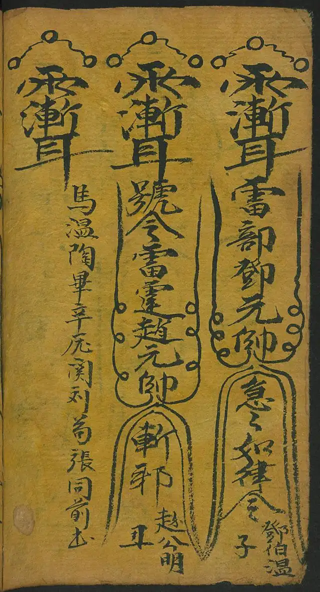 首行:“奉北极紫微大帝敕令”或“奉九天应元雷声普化天尊敕令”