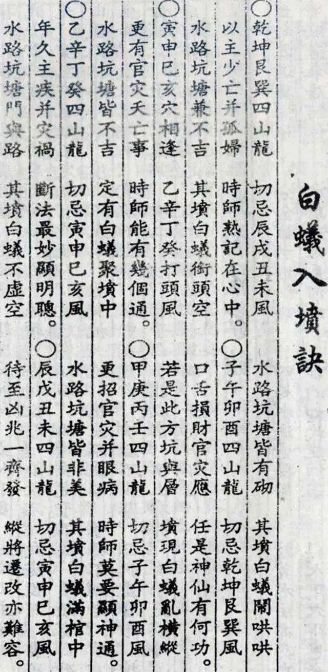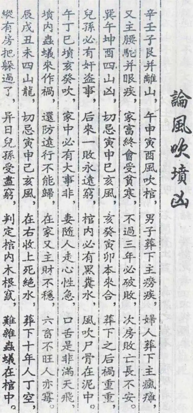 凡入坟地,察其形气,便知家运。此诀精炼,直指要害,乃历代地师经验之结晶,今详释如下:一、左右高低断子息左高发长子:坟之左方(青龙位)地势或砂丘较高,主长房发达。右高发次门:坟之右方(白虎位)高起,主二房兴旺。二、坟后高低断人丁坟后高又高,子孙称英豪:坟后地势逐渐高起,有靠山稳固,主子孙英杰豪迈。坟后向外低又低,子孙到老无衣食:坟后地势渐低,无靠山护卫,主子孙贫苦,老来衣食无着。坟后慢慢低,必定取三妻:坟后缓坡下降,主男子婚姻不稳,多次娶妻。坟后一尺低,辈辈子孙稀:坟后近处低陷...
